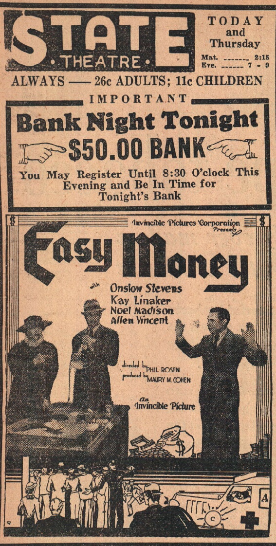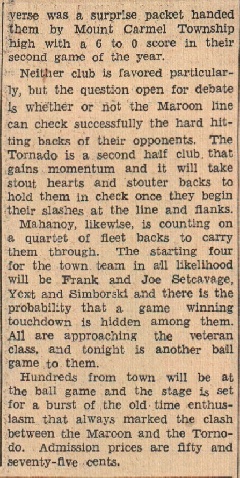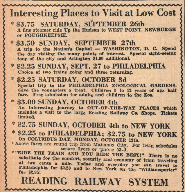 Take a trip in the Way- Back Machine to 1936 in Mahanoy City, Pennsylvania. How about dinner and a movie? Only have $2.00 ? No problem. Take your wife or girlfriend to any of the following establishments and then to the Vic, the State or the Elks Theaters. What's the tab? Dinner and a few drinks for two in any of the thirty-seven establishments listed below - less than a dollar. Movie tickets, popcorn and sodas for two at any of the three theaters - less than a dollar. Dinner and dancing instead ? Get hip to the live music at: the Grier Inn, the Log Cabin Inn, Luke's Grove Inn, the Moose Grill, the Echo Dale, the Paradise or Jack Hess's. The only question is - do you have two bucks?