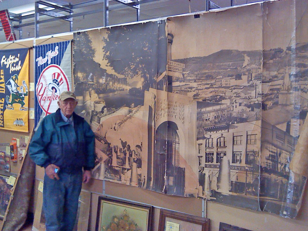 Ed Makes a "find" at Blum's Auction at the Schuylkill Mall in 2015. This montage of Mahanoy City was created in the late 1940s and can now be seen in the historical society museum