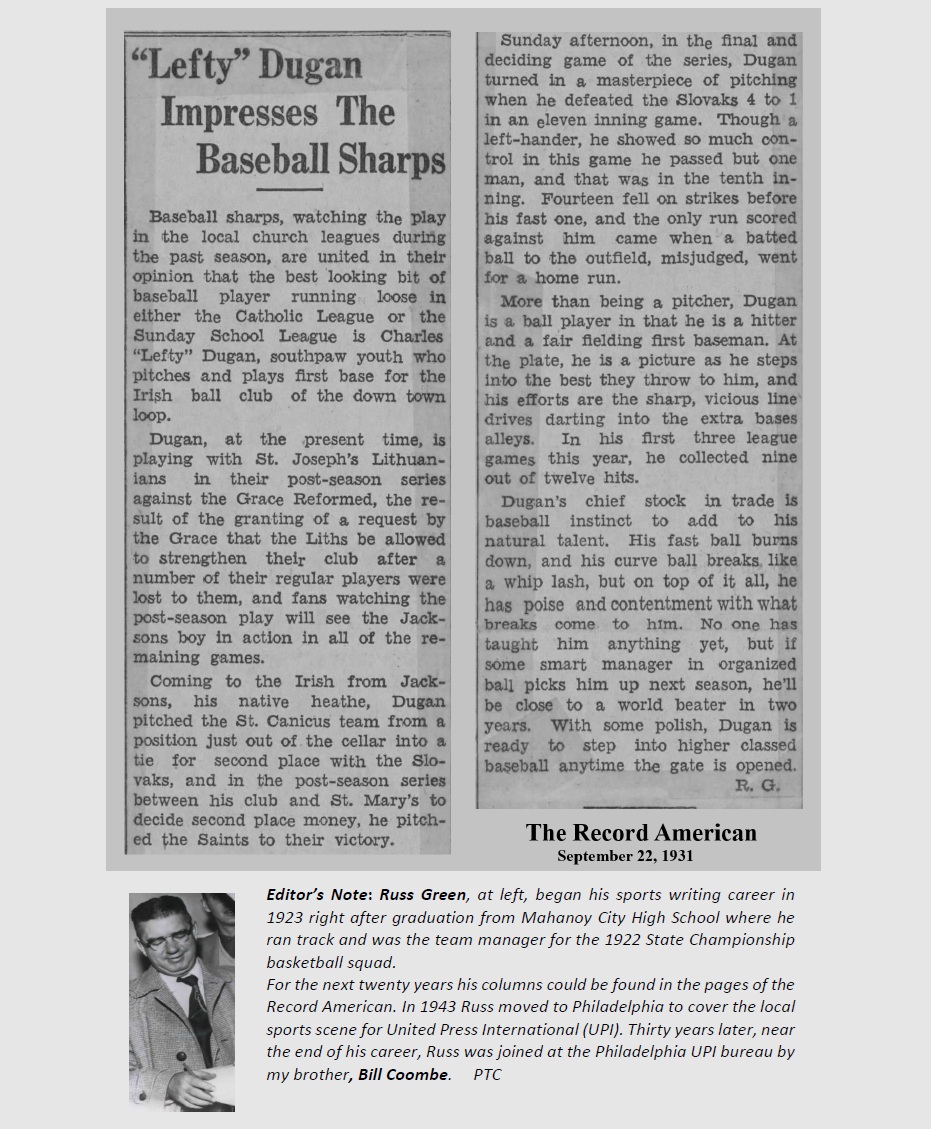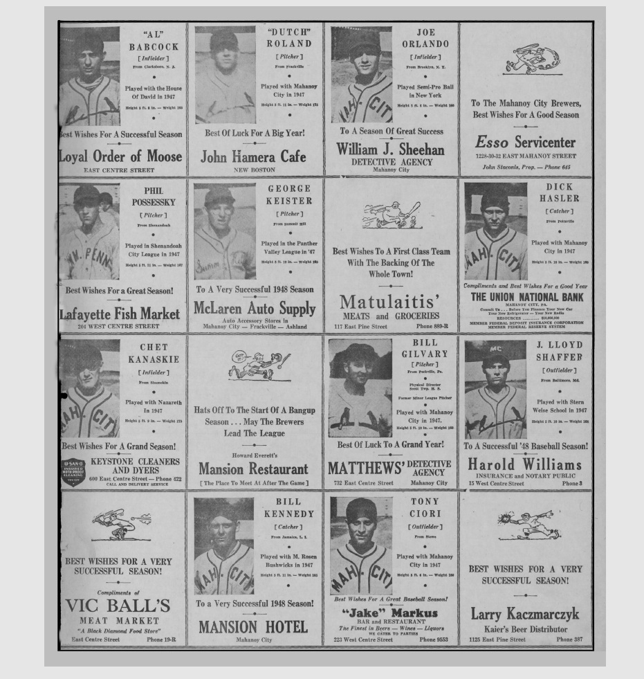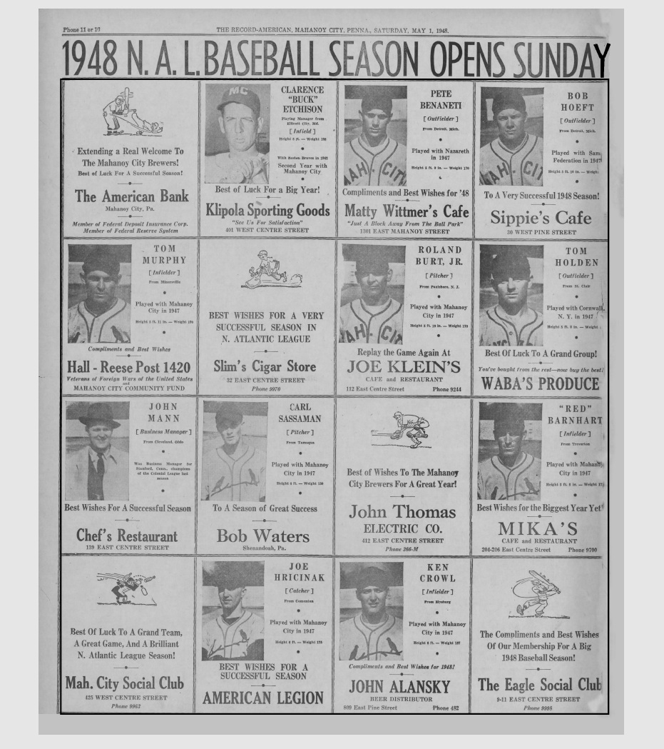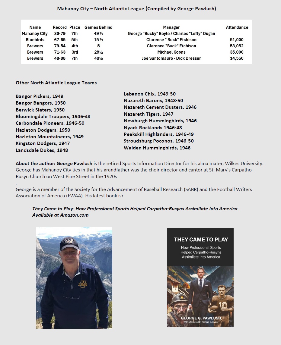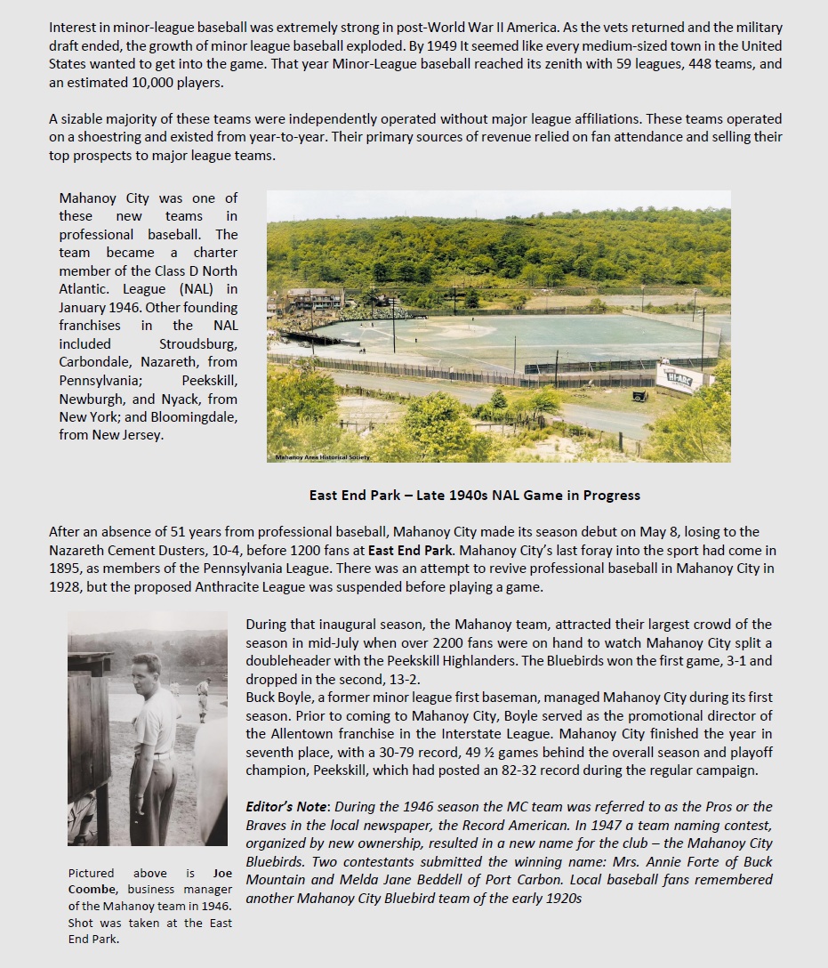 PROFESSIONAL BASEBALL IN MAHANOY CITY