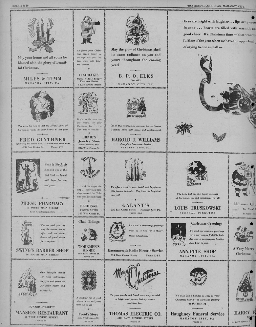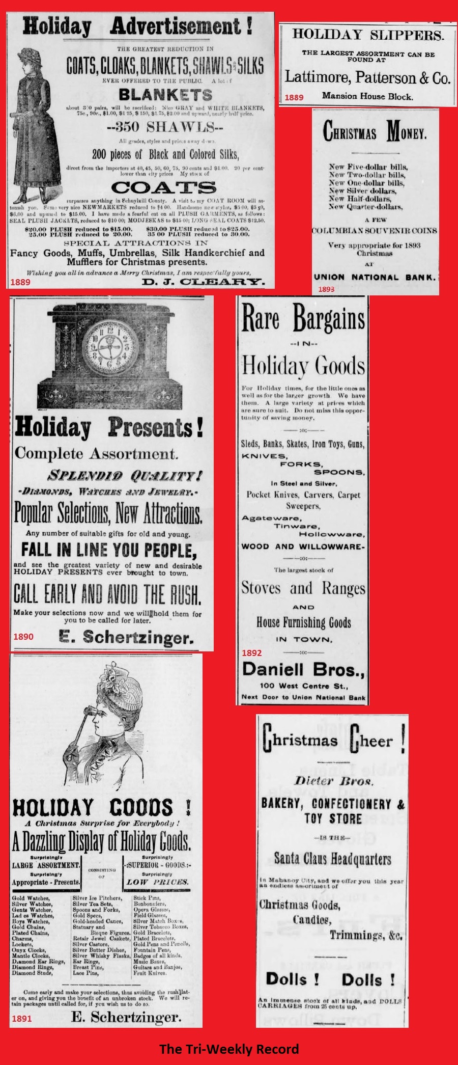 In 1937 the Mahanoy City Social Club placed the first tree at the intersection of Centre and Catawissa Streets.