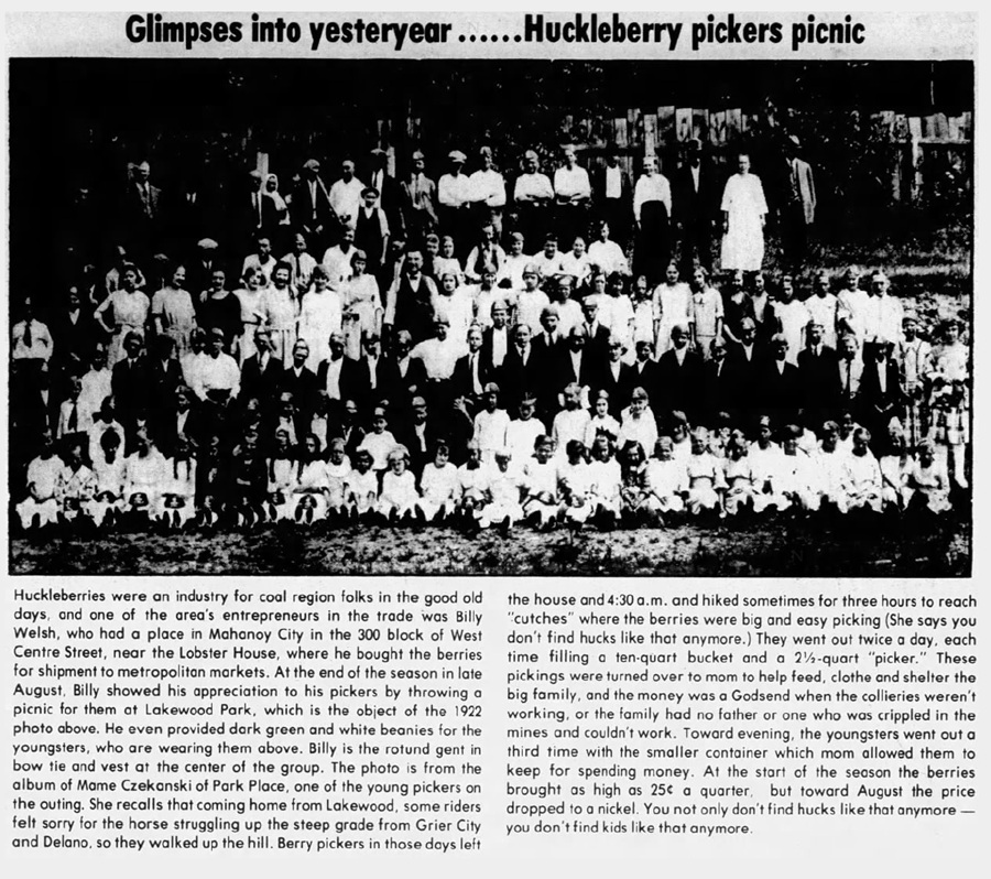 During the spring was huckleberry season and each family would gather together and wait for a truck which would transport them up into the hills where hopefully they would find the berries. Usually everyone's started out with a picker. This was maybe a 1/2 quart container. When it was filled up, the berries would be transferred to a larger 10 or 12 quart bucket until it was filled. Most families carried several sandwiches and drinks because this was an all day affair. Family sometimes got as many as 40 to 60 quarts for the day. My brother Paul and I usually paired up. I hated picking the berries and he liked to listen to detective stories. So I would bring along a couple of books and read to him as he picked. Most of the time we would carry a large thick branch just in case we roused up a snake.