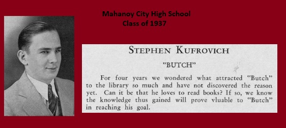 Stephen Kufrovich was a World War II veteran rising to the rank of Staff Sergeant. He came back to Mahanoy City after his military career, married and had a son. Stephen became and engineer and later in life specialized in memory enhancement. His sister, Florence, taught 4th grade next door to me where I taught 5th grade at Mahanoy City Catholic School in the 1970s. I remember that one year Florence had Stephen, an excellent magician, come to MCCS during Catholic Schools Week to do a magic show program for the students.