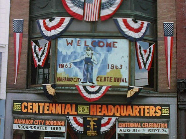 Mahanoy City's 1963 Centennial DVD's are now available. This one hour film shows highlights of Centennial Week August 31 to September 7, 1963, the 1960 Fireman's Convention Parade, the dedication of the Mahanoy City Little League Field in 1958 and various other clips from the 1950's and 60's. Stop by the Historical Society on the first floor of the Rhoades Downtown Center at Main & Center Streets to purchase the video for $10.00 or send a check for $12.00 to: