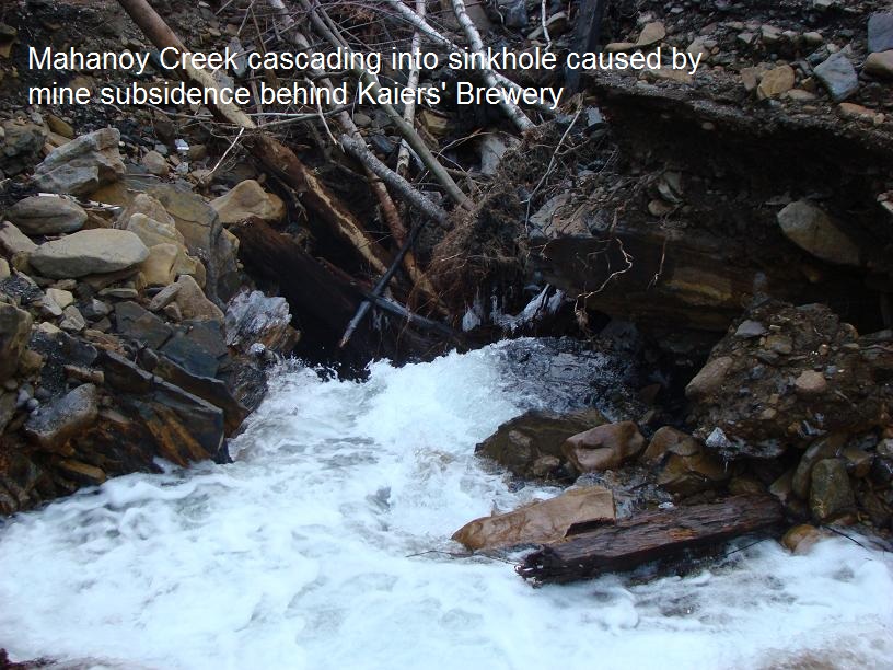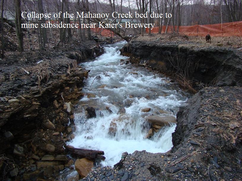 Mahanoy Creek bed subsidence. Click on photos to enlarge.