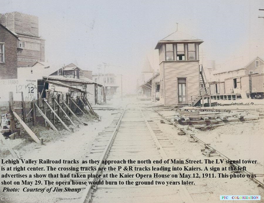 The waters coming down the swamp came in contact with the railroad embankment, and this again served to reduce the force of the torrent. The scenes which followed in town have already been described. The black torrent swept over that section of town north of the P .&R. railroad bridge, buildings were whirled around by the current and torn asunder. The waters then swept out Main street, going as far south as Mahanoy street. But the main body of water turned down Centre street, submerging cellars of stores, filled with valuable goods, on both sides of the street, clear down to the lower end of the town.