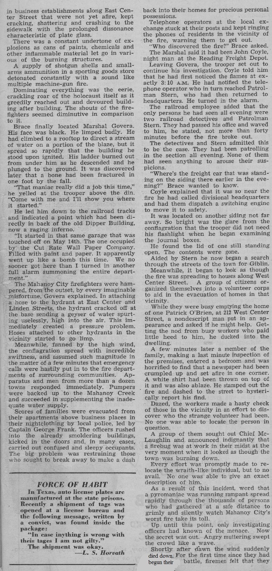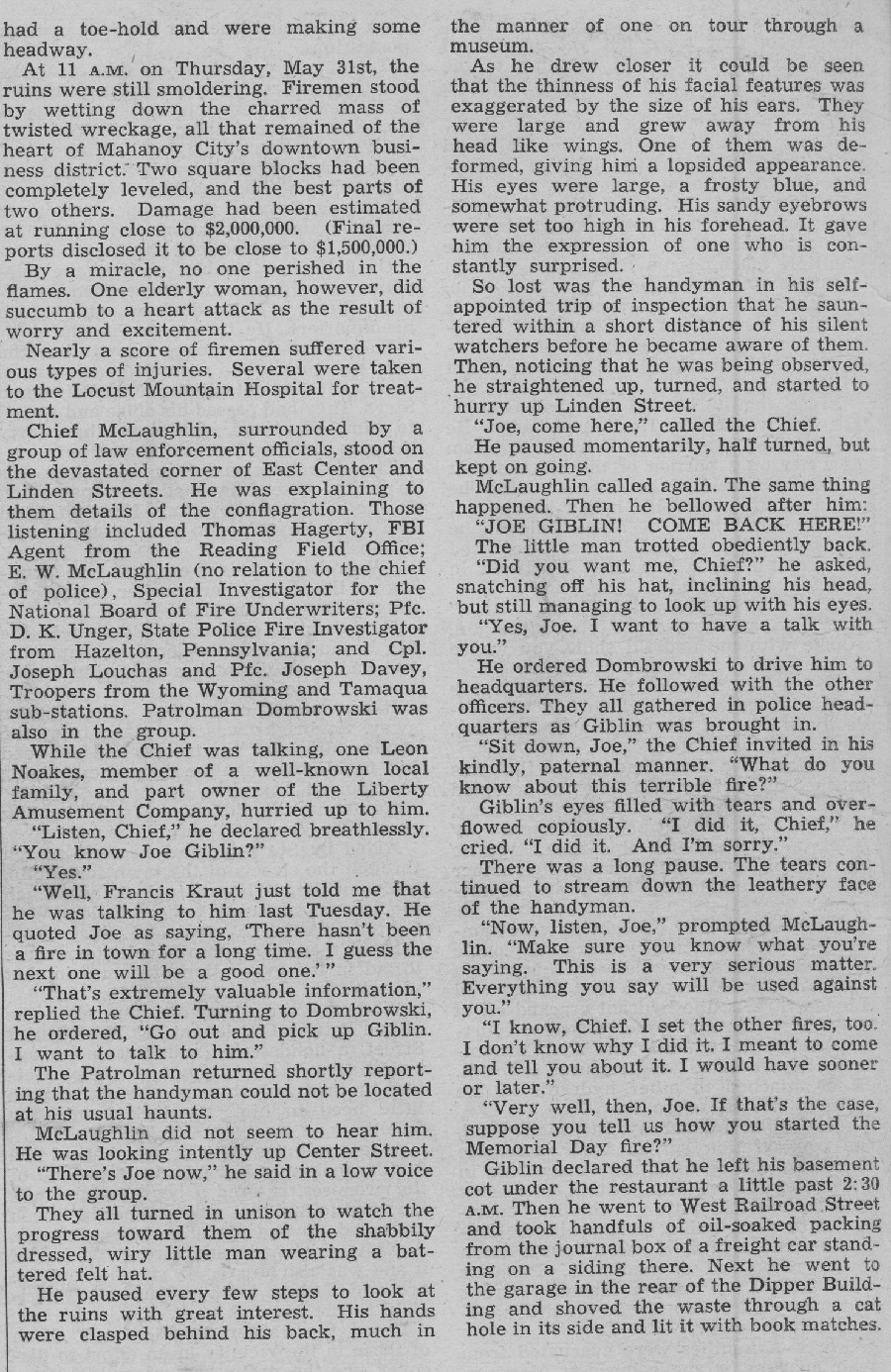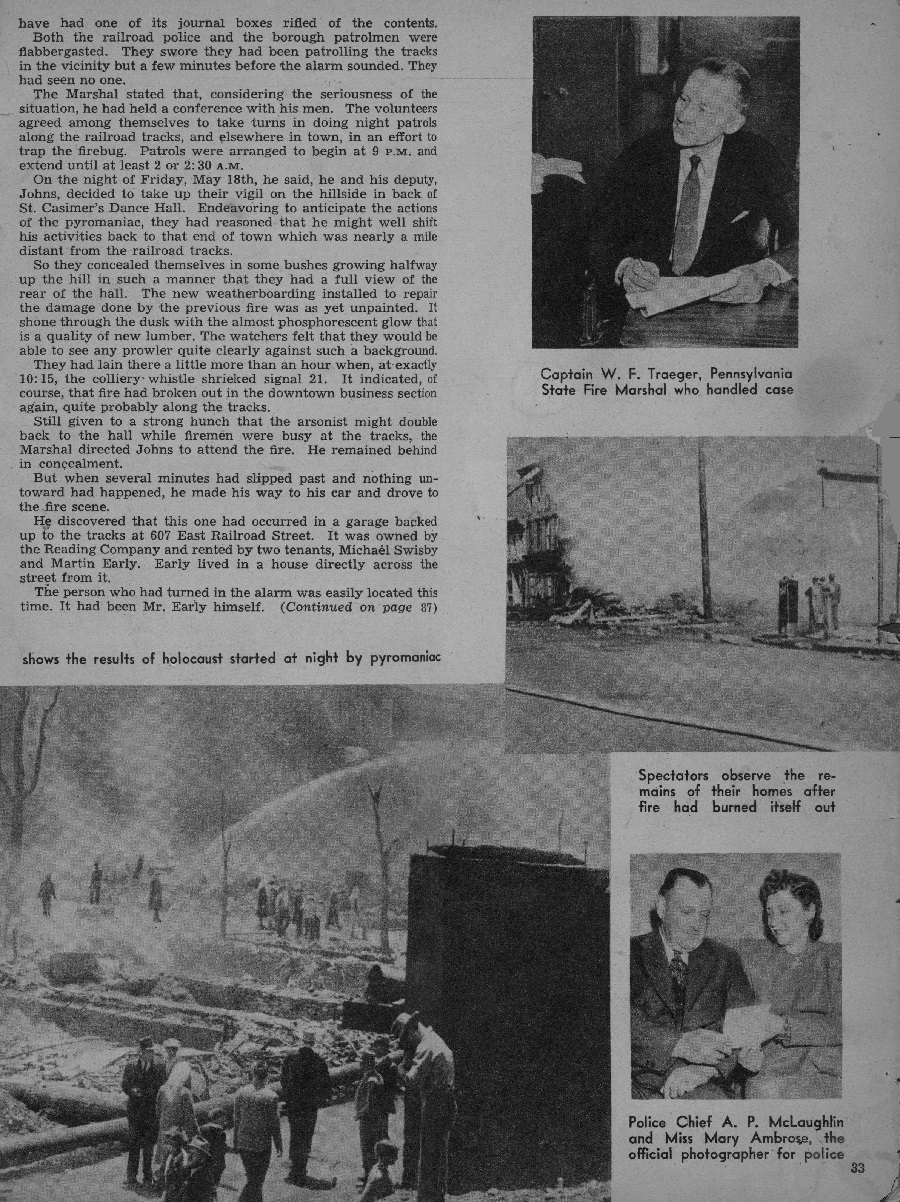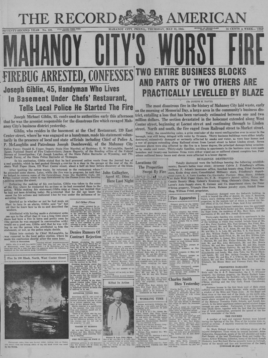 At 3:10 A.M. the fire alarm at Catawissa and Centre was pulled by Patrolman Charles Stern. During the next hours before daybreak on Memorial Day the worst fire in