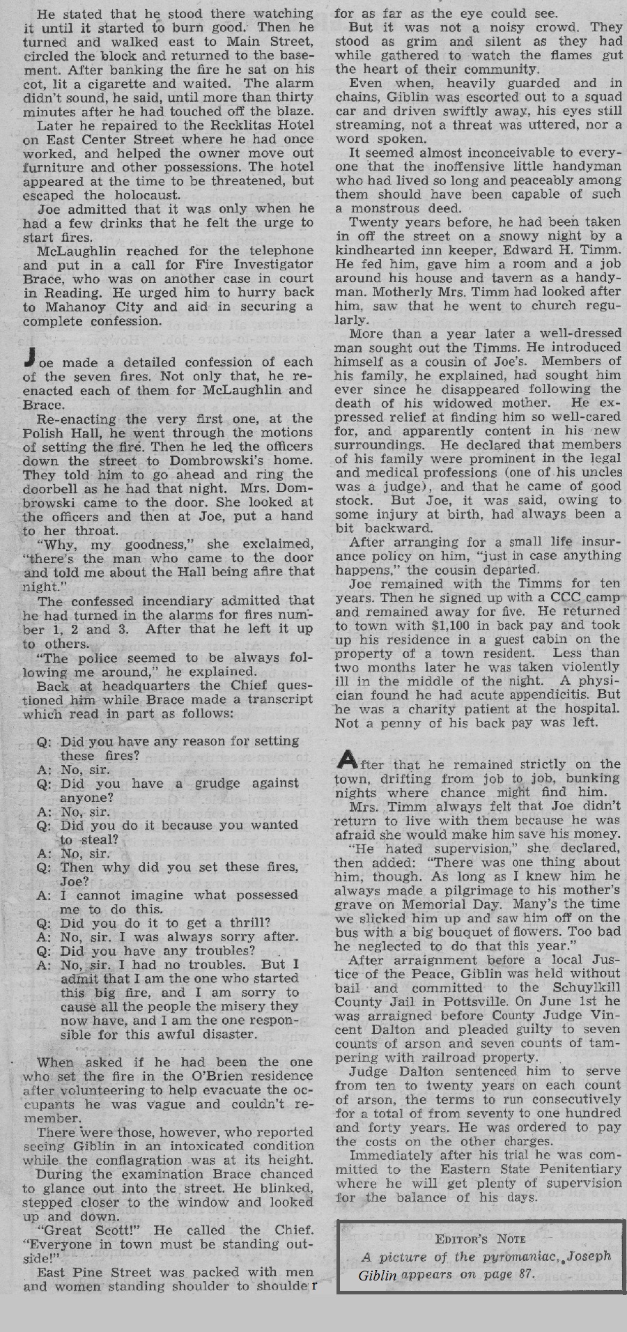 Thanks to Jim Kates, the historical society has been able to digitize a March 1948 edition of Master Detective Magazine which contained the story, Case of the Phantom Firebug. The story ran in Master Detective almost three years after the infamous Memorial Day fire of 1945.