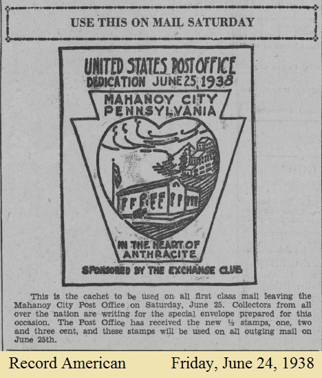 June 25th 2013 marked the 75th anniversary of the opening of the Mahanoy City Post Office. In commemoration of this event the historical society